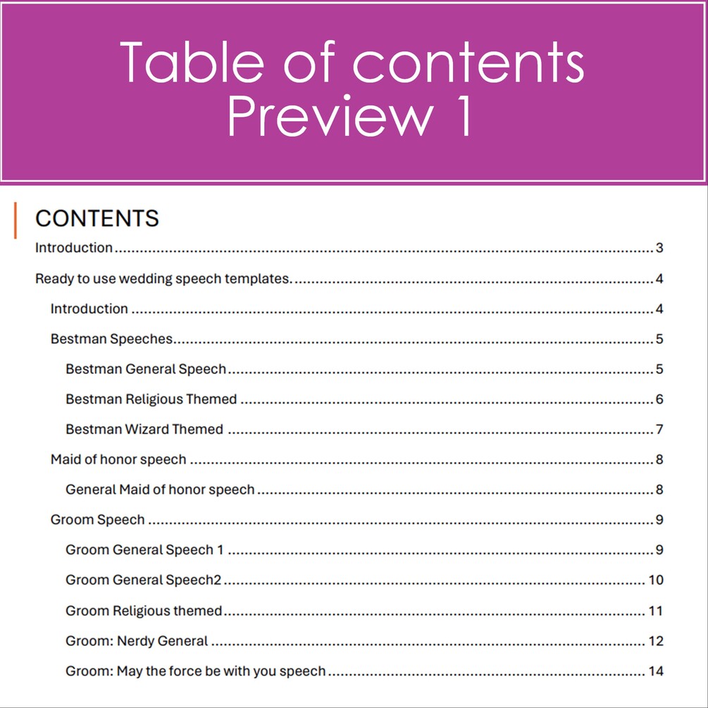 A comprehensive digital guidebook featuring 22 customizable wedding speech templates and a step-by-step speech-building guide to help you craft the perfect message for any role in the celebration.